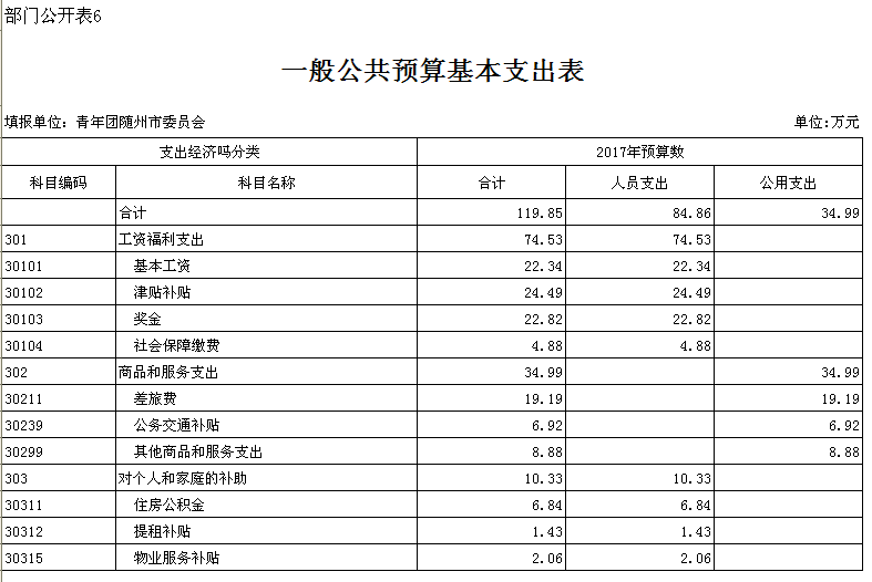 第三部分 共青團(tuán)隨州市委2017年部門預(yù)算表