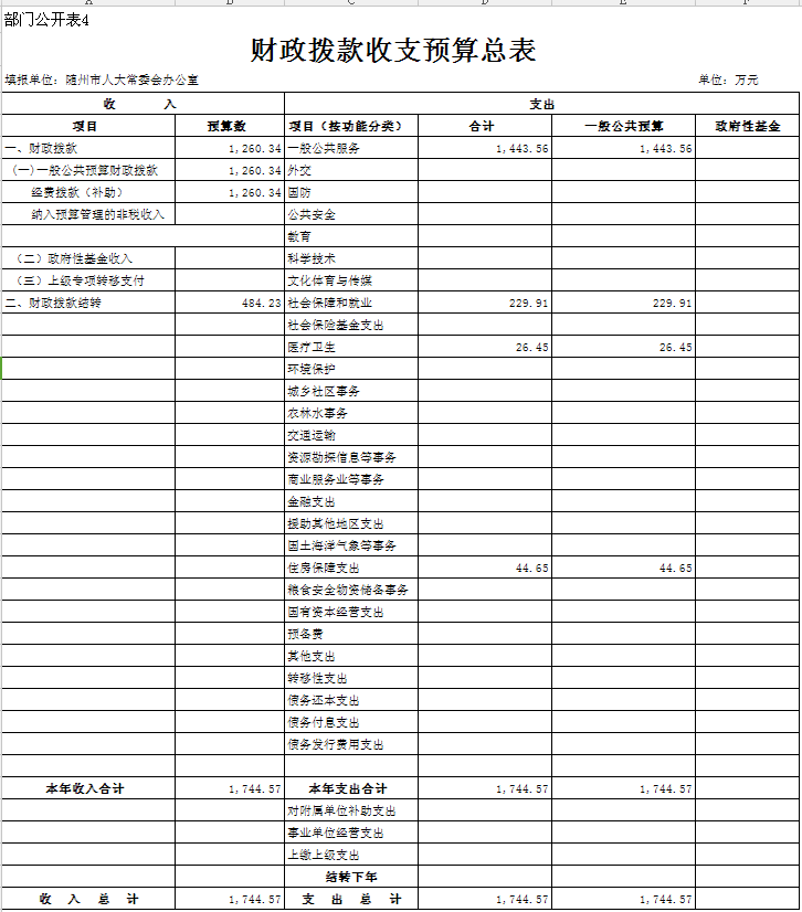 四、財政撥款收支總表