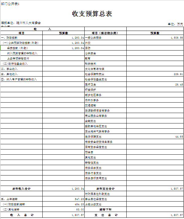 一、收支預算總表