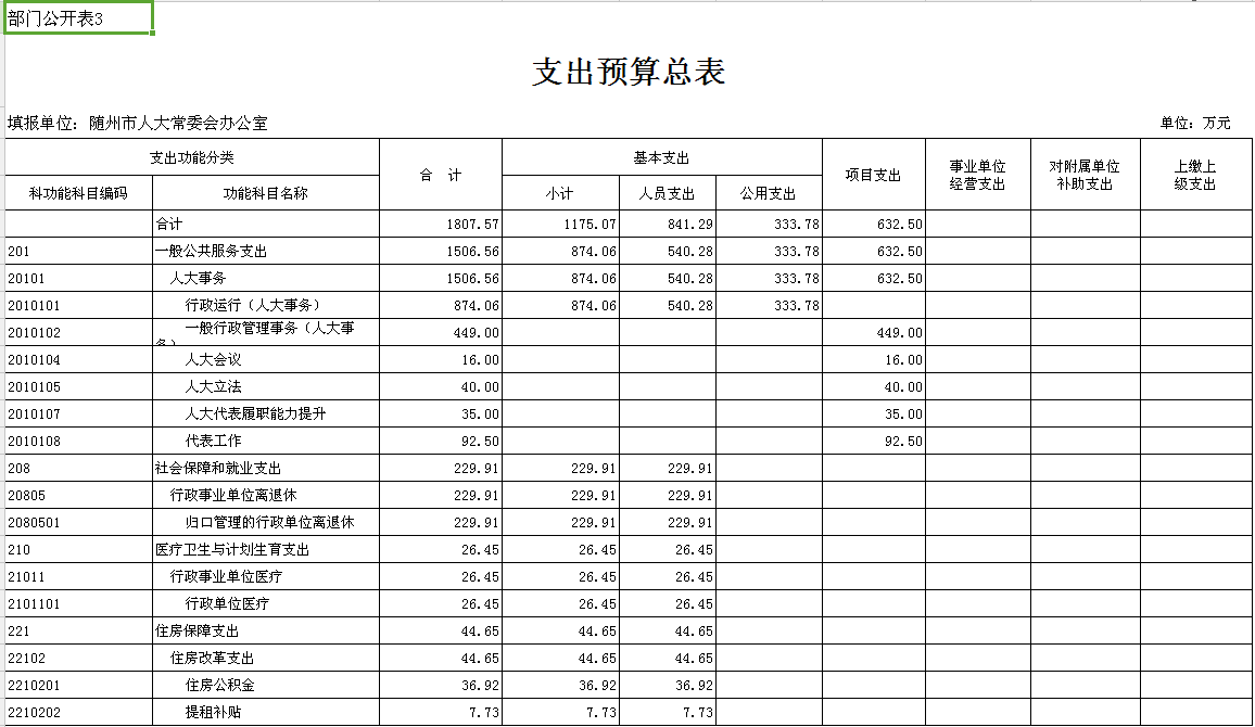 提租補貼(2210202):反映市人大機關住房補貼經費支出。