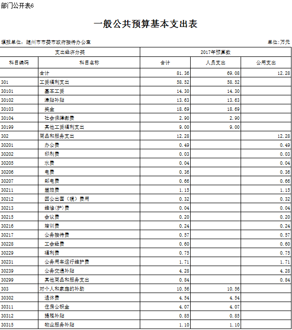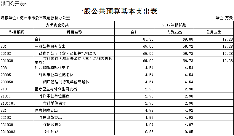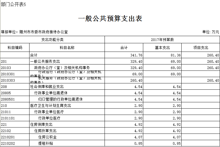 隨州市委隨州市人民政府接待辦公室2017年部門預算表