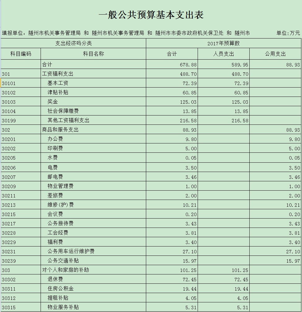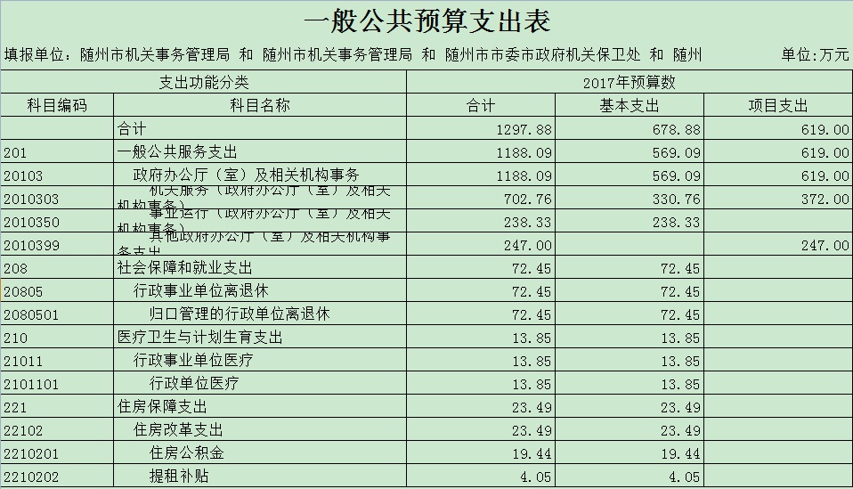 第三部分 隨州市機關事務管理局2017年部門預算表