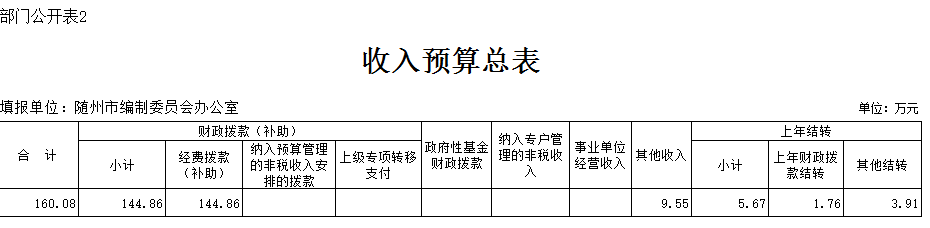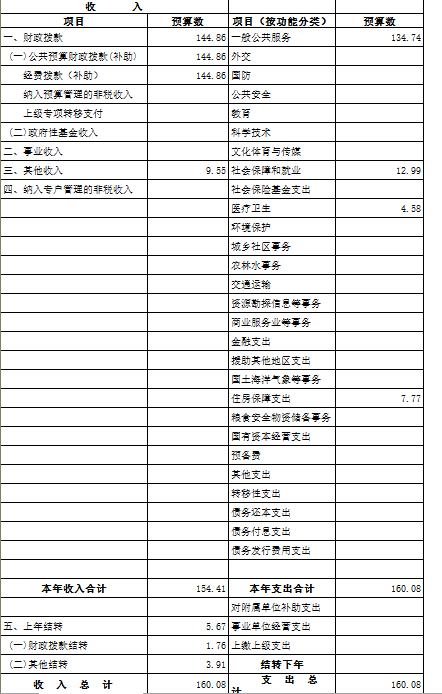 2017年收入預算總額為160.08萬元,其中:一般預算撥款144.86萬元,其他收入9.55萬元,上年財政撥款結轉1.76萬元,其他結轉3.91萬元。較上年預算安排增加24.28萬元,增長17.88%。