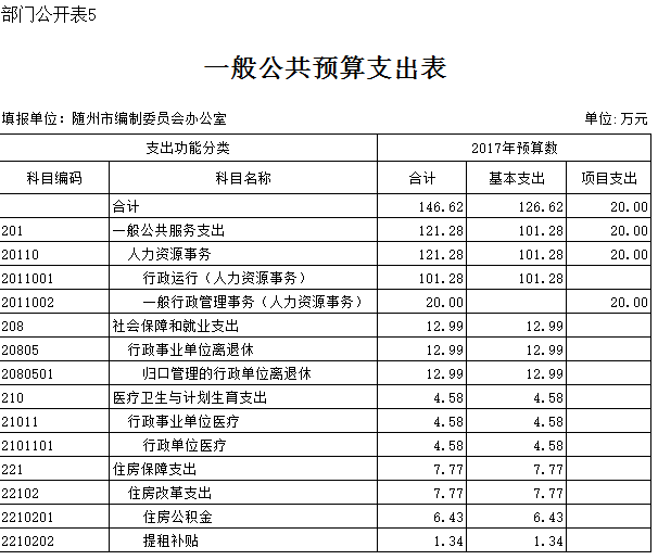 2017年財政撥款支出預算總額為146.62萬元,其中基本支出126.62萬元,項目支出20萬元。財政撥款預算安排支出較上年增加25.17萬元,增長20.72%。