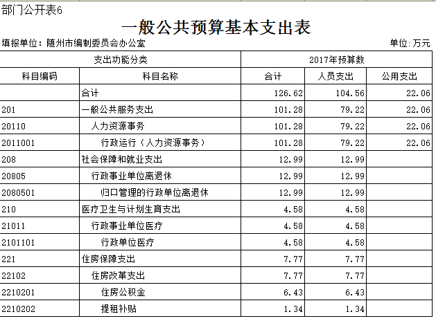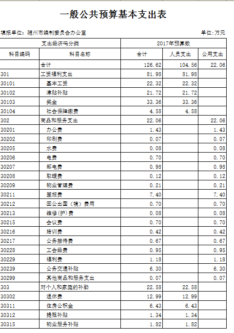 基本支出126.62萬元:(1)人員經費支出104.56萬元,其中:在職人員工資福利支出經費79.22萬元;歸口管理的行政單位離退休經費12.99萬元;行政單位醫療經費4.58萬元;住房公積金6.43萬元;提租補貼1.34萬元; (2)日常公用經費支出22.06萬元。