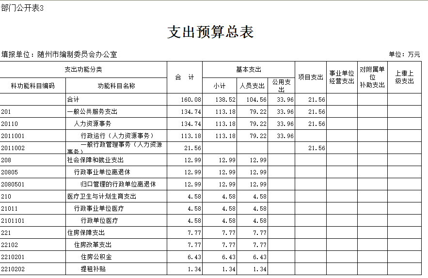 2017年支出預算總額為160.08萬元,其中:一般公共服務134.74萬元,社會保障和就業12.99萬元,醫療衛生4.58萬元,住房保障支出7.77萬元。較上年預算安排支出增加24.28萬元,增長17.88%。