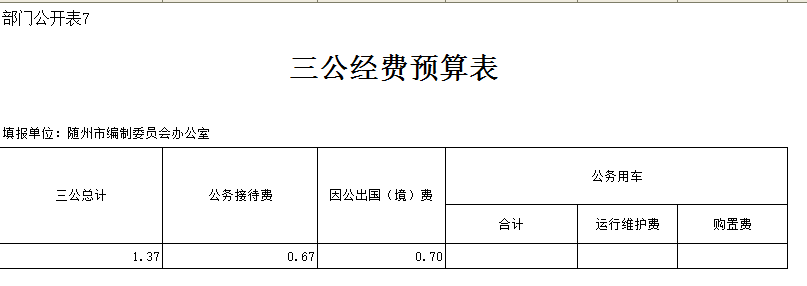 2017年隨州市編辦“三公”經費年初預算安排1.37萬元。其中: