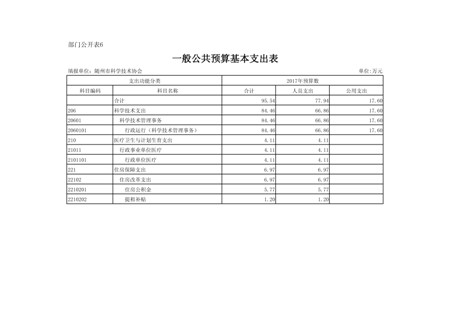 部門預算單位為隨州市科學技術協會,實有編制7人,其中:行政編制6人,以錢養事1人。