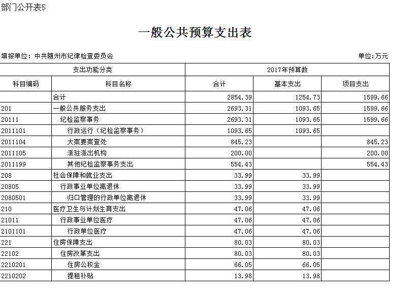 中共隨州市紀委 隨州市監察局2017年部門預算