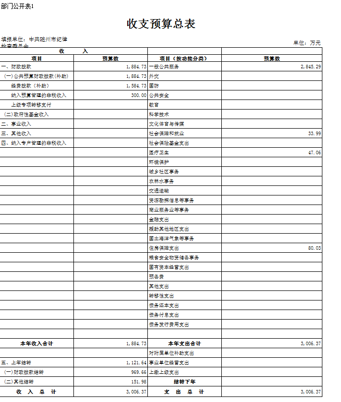 1、財政撥款收入:反映市級財政預算安排且當年撥付的資金。