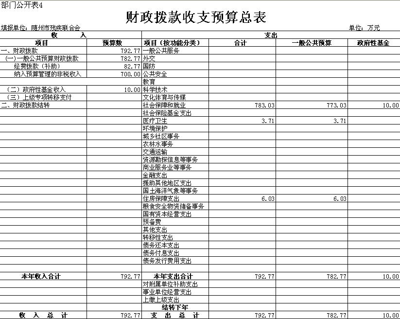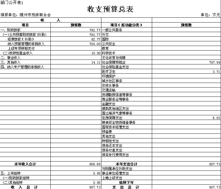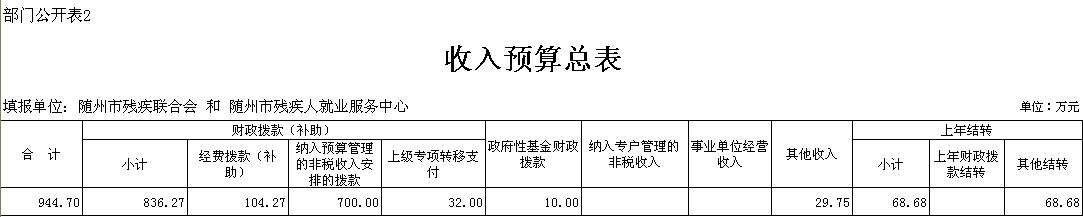 1、隨州市殘疾人聯(lián)合會機關(guān)預(yù)算公開表
