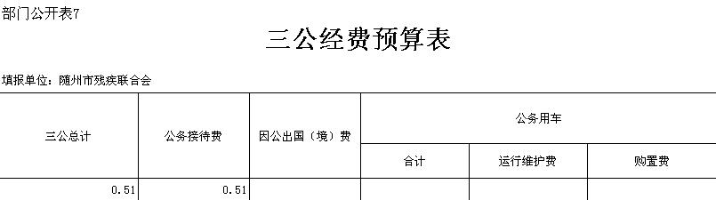 2018年隨州市殘聯(lián)(本級)“三公”經(jīng)費年初預(yù)算安排0.51萬元。其中: