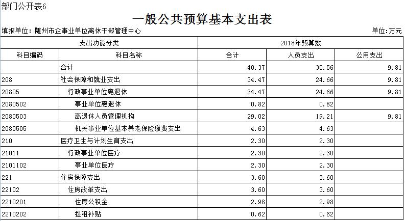第三部分 隨州市企事業單位離休干部管理服務中心2018年部門預算表