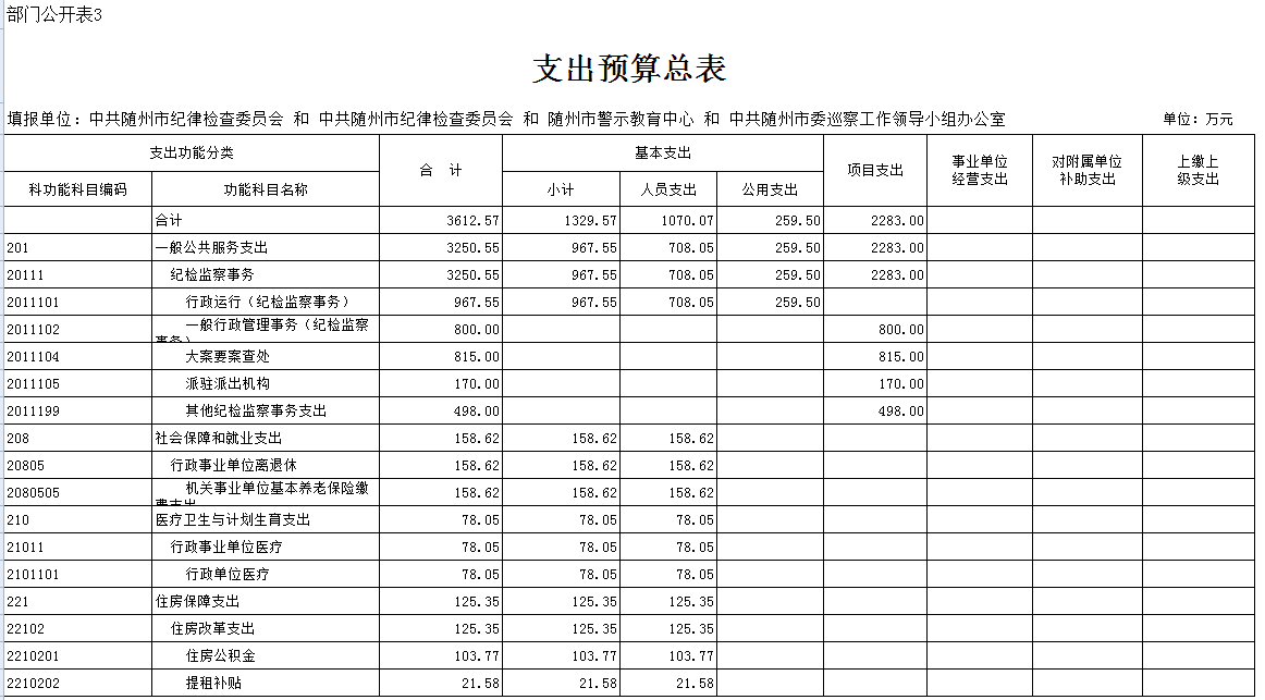 委機關:2018年隨州市紀委監委“三公”經費年初預算133萬元,比上年增加10.72萬元,同比增加8.06%,主要原因是監察體制改革,業務范圍拓寬,職能加強。其中: