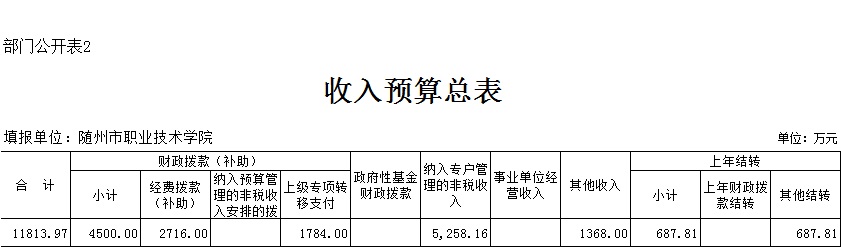 隨州職業(yè)技術(shù)學(xué)院2018年部門預(yù)算公開