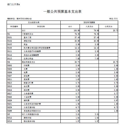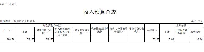 隨州市婦聯(lián)2018年部門預算表
