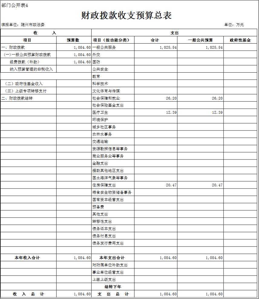 2018年財政撥款支出1084.6萬元,其中,一般公共服務(wù)支出1025.54萬元,社會保障和就業(yè)支出26.2萬元,醫(yī)療衛(wèi)生支出12.39萬元,住房保障支20.47萬元。比上年增加467.22萬元,同比增43.08%,主要原因是增加了新增性項目——市政法機關(guān)信息化“1234”工程建設(shè)專項經(jīng)費預(yù)算支出。
