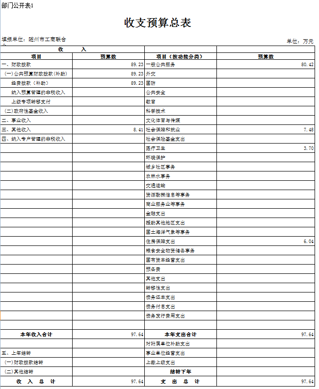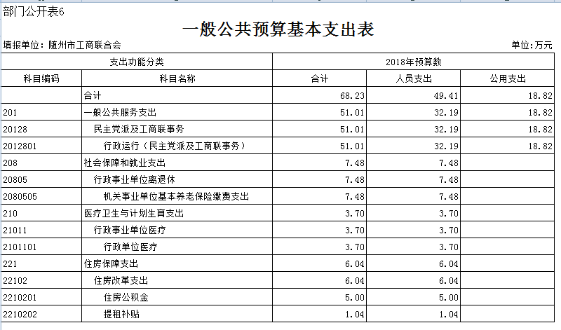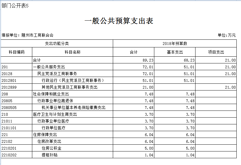 第三部分隨州市工商聯2018年部門預算表