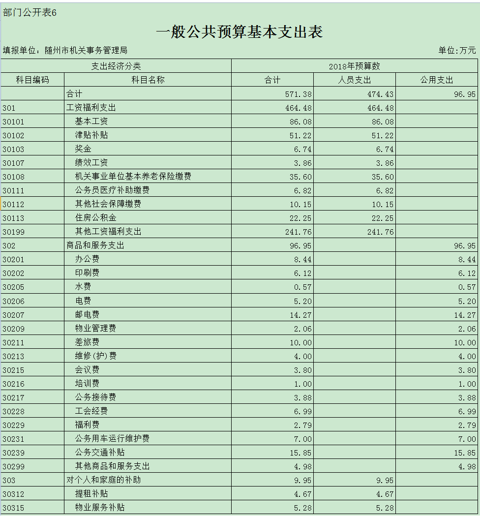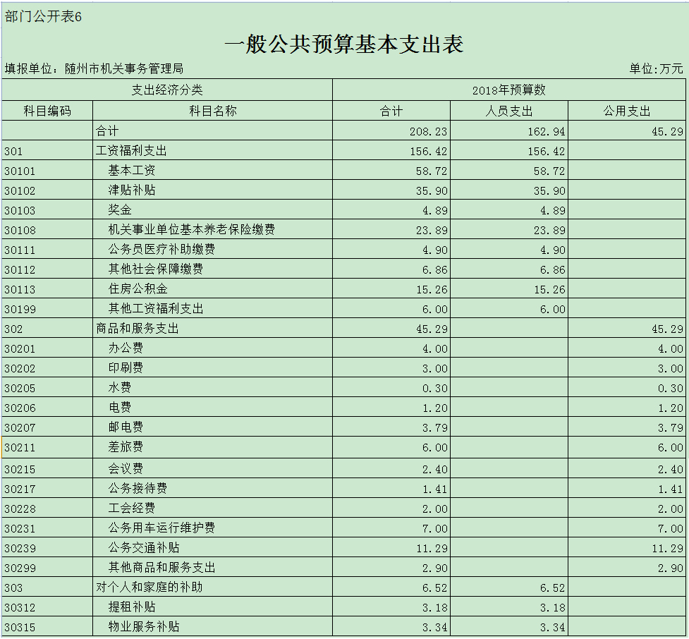 第三部分 隨州市機關事務管理局2018年部門預算表