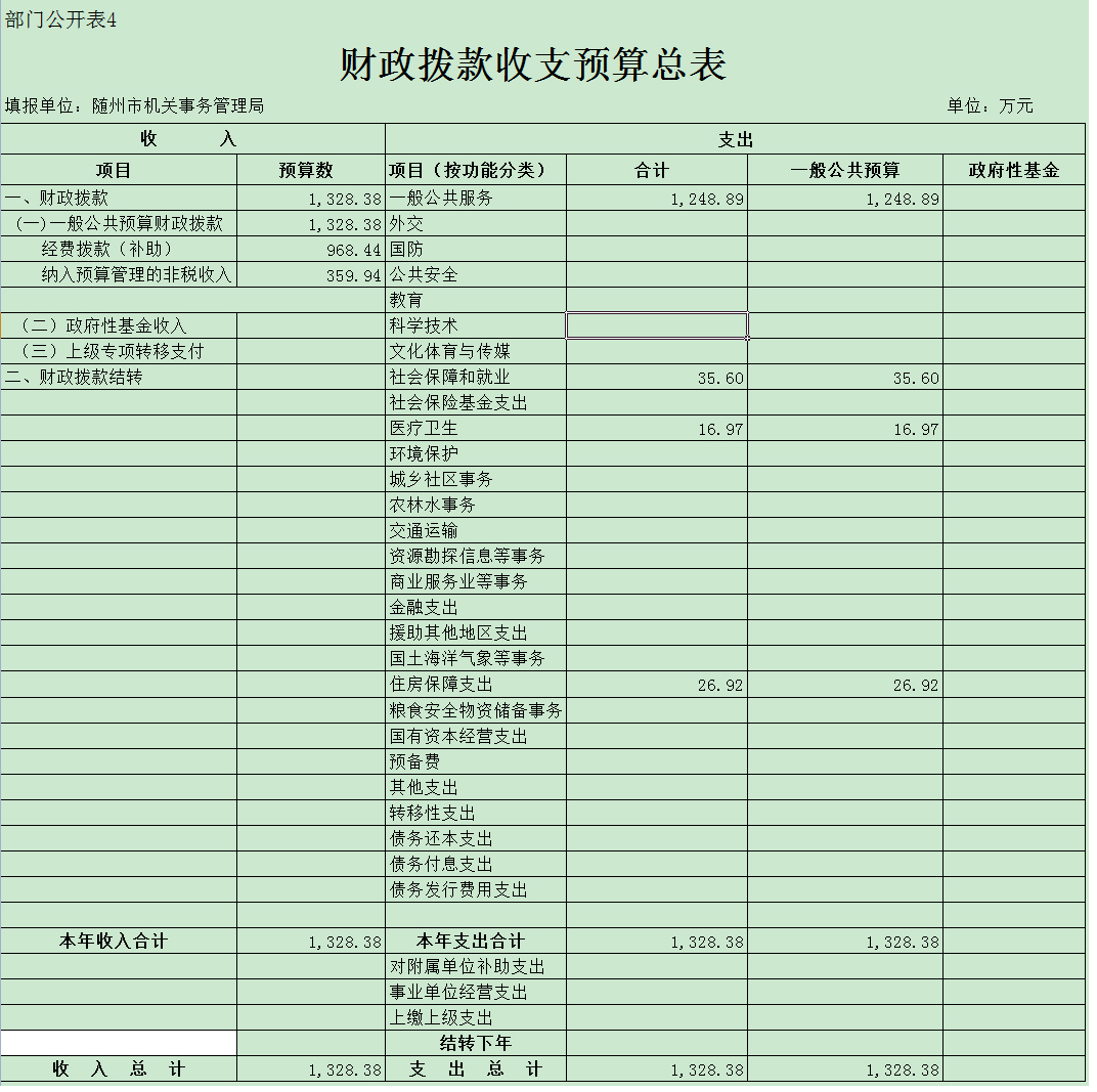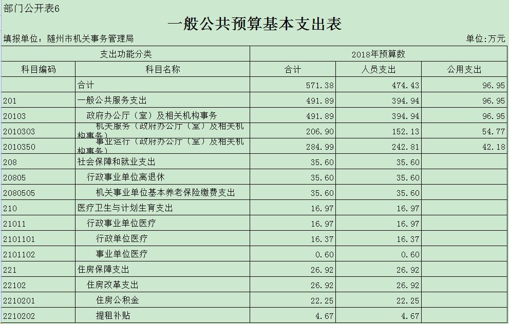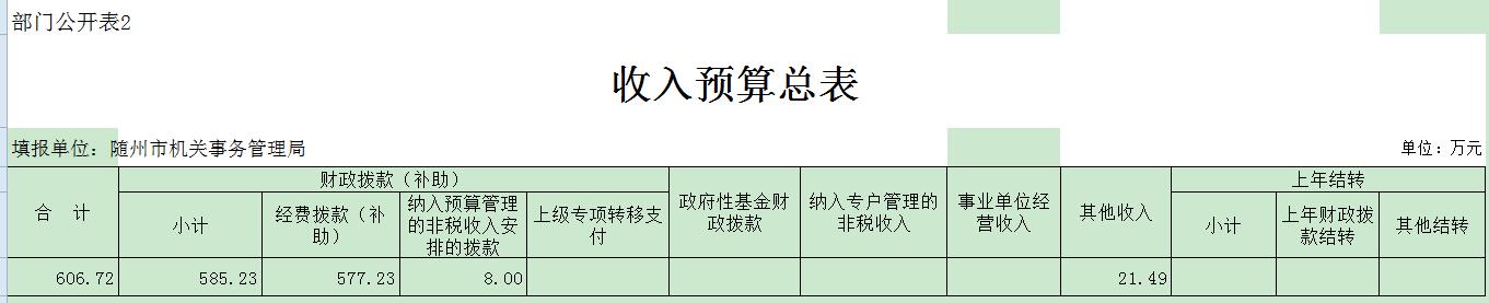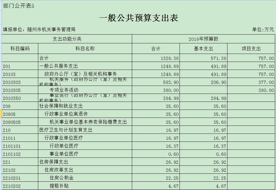 隨州市機關事務管理局2018年部門匯總預算公開