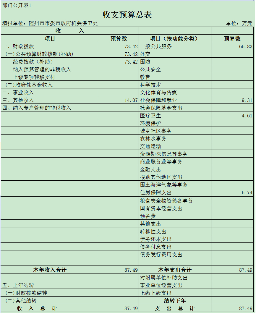 一、部門預算匯總表