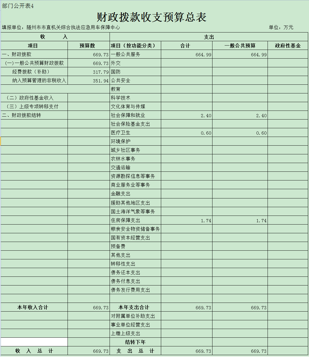 四、市直機關公車保障中心預算表