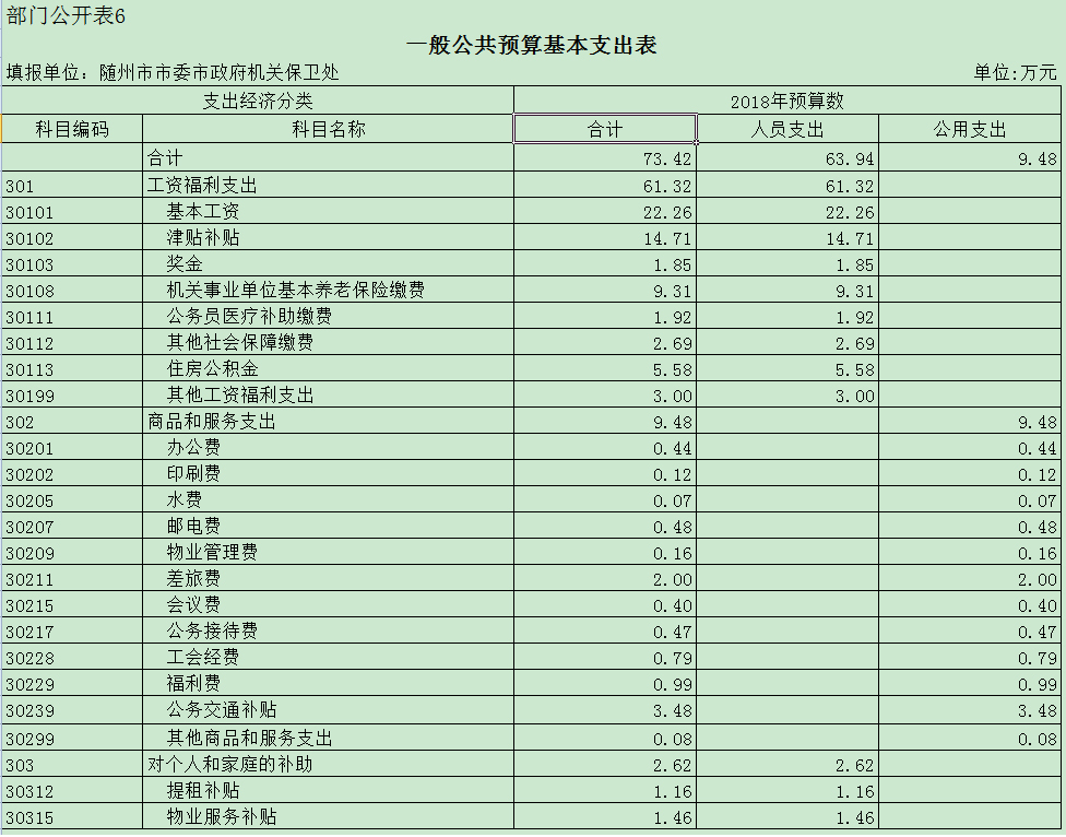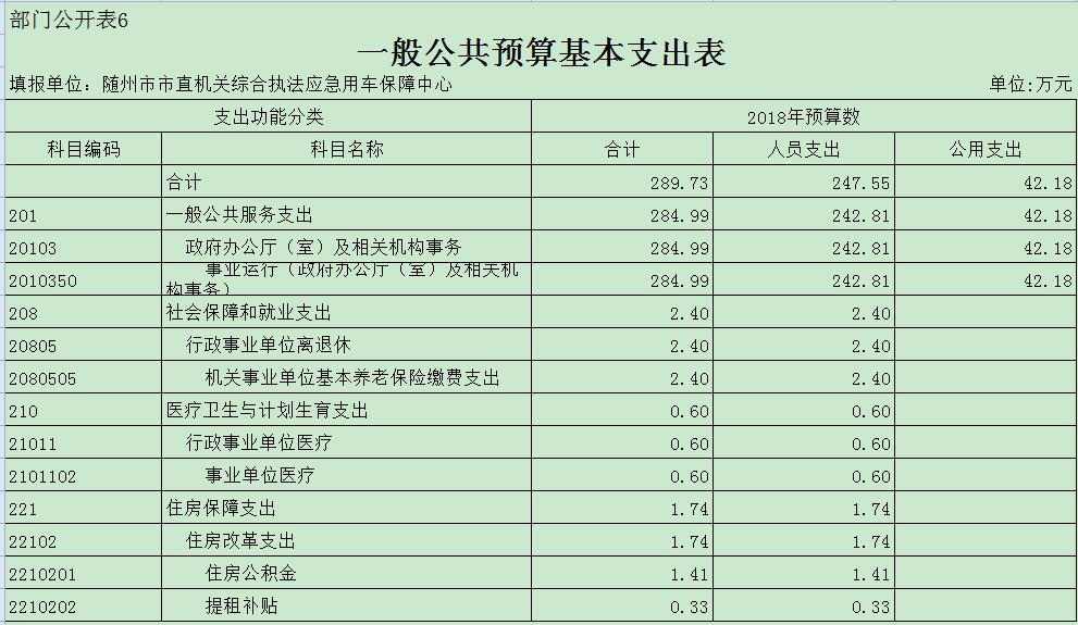 一、本部門2018年部門預算匯總表