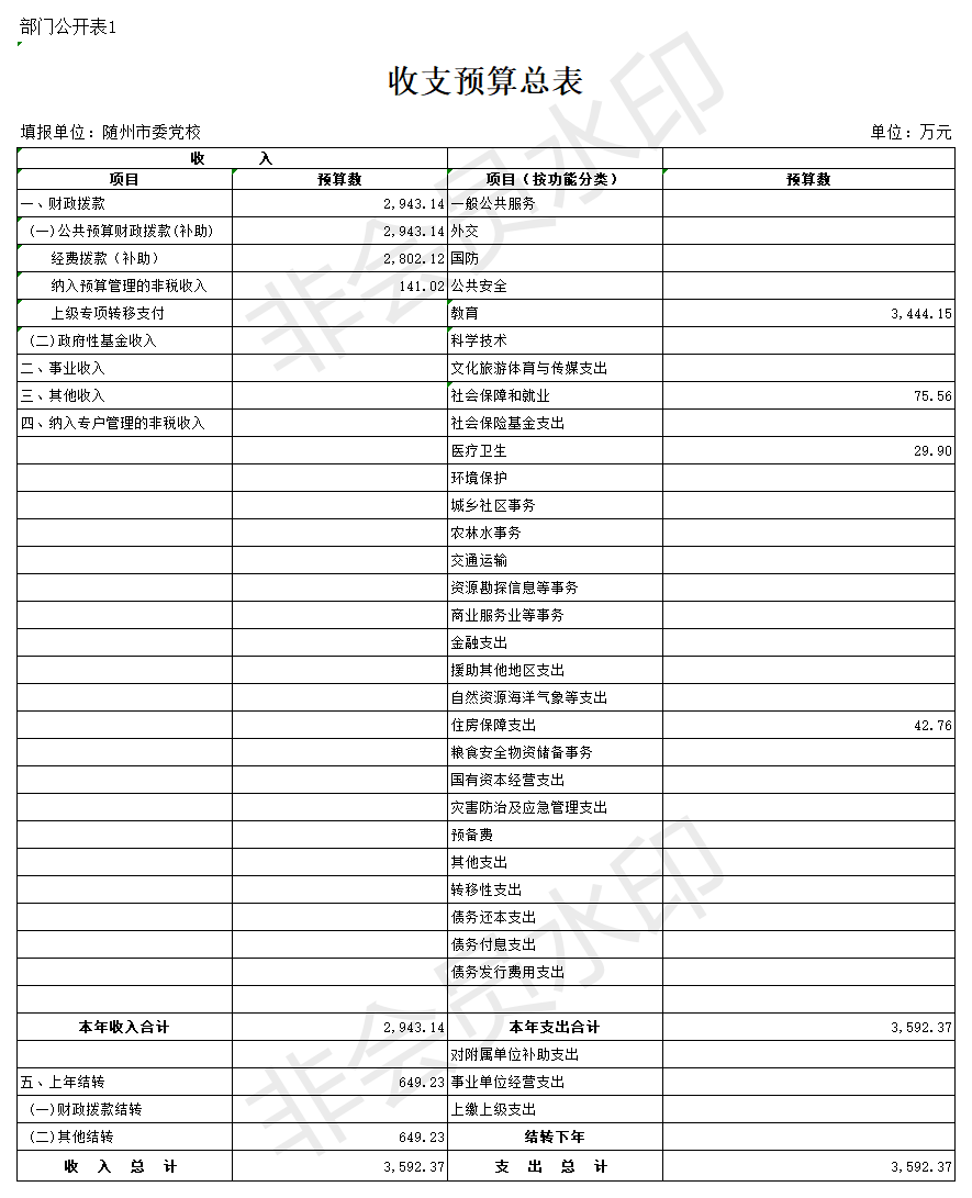 隨州市委黨校是公共預算全額撥款的參照公務員法管理的事業單位,是獨立核算機構,內設辦公室、基層黨校科、政工科、教研室、市情研究室、教務科、學員組織科、公務員培訓科、函授部、總務科、隨縣分校、網絡管理科12個科室,無下設二級單位。單位編制人數為42人,實有人數41人。