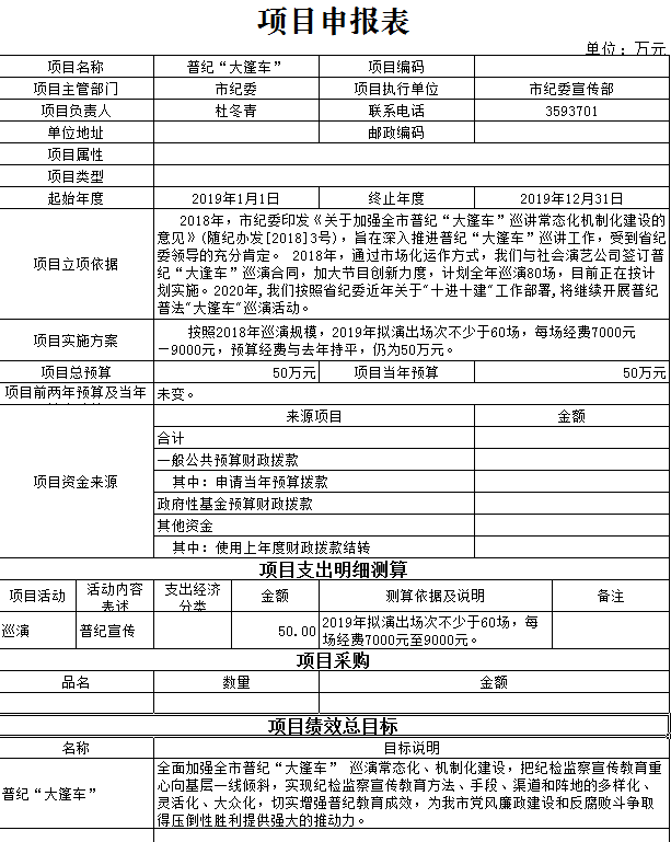 系統匯總:2019年度市紀委監委系統運行經費347.53萬元,其中辦公費41萬元、印刷費30萬元、水費2.5萬元、電費10萬元、郵電費2.5萬元、取暖費5萬元、辦公用房物業管理費5萬元、差旅費25萬元、因公出國境費10萬元、日常維修費10萬元、會議費10萬元、培訓費10萬元、公務接待費12萬元、工會經費20萬元、福利費20萬元、公務用車運行維護費25萬元、公務交通補貼102.53萬元、其他商品服務支出7萬元。較上年預算安排增加88.03萬元,增長比例達33.92%,主要是因為監察體制改革,業務范圍拓寬,人員增加。