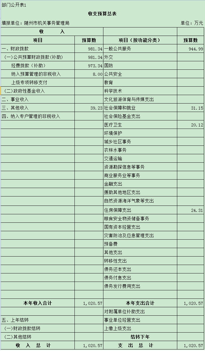 第三部分 隨州市機關事務管理局2019年部門預算表