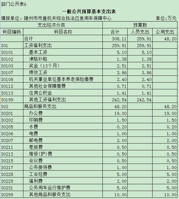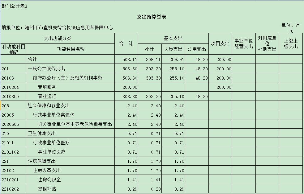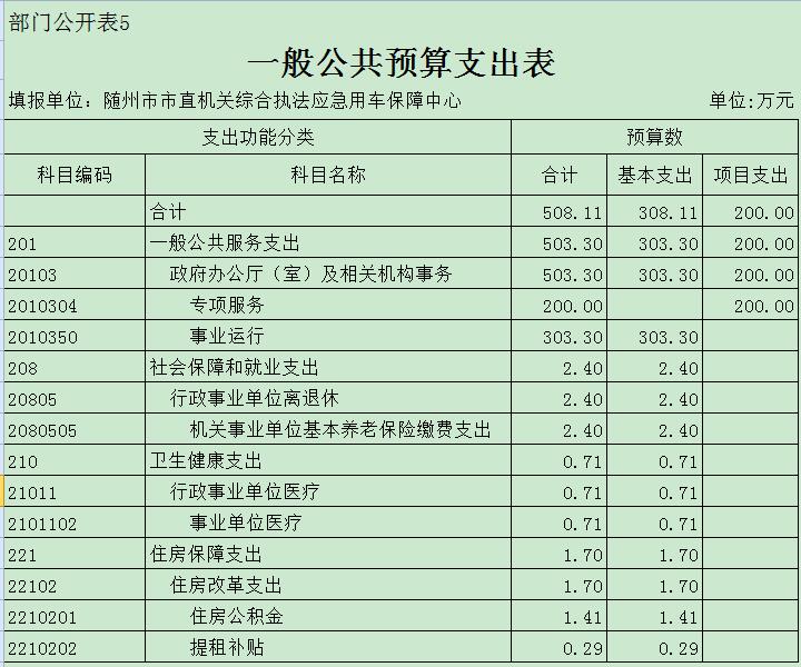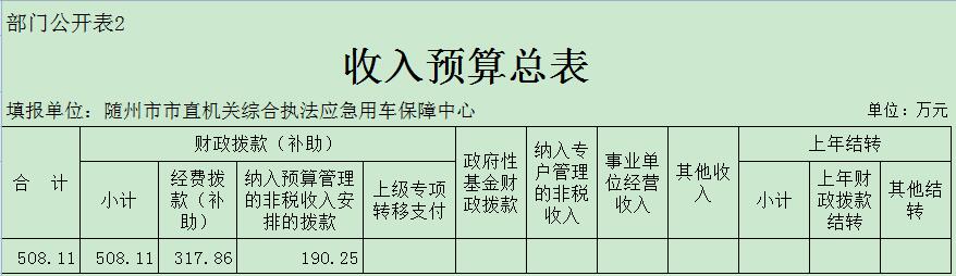 三、市直機關綜合執法應急用車保障中心2019年部門預算公開表