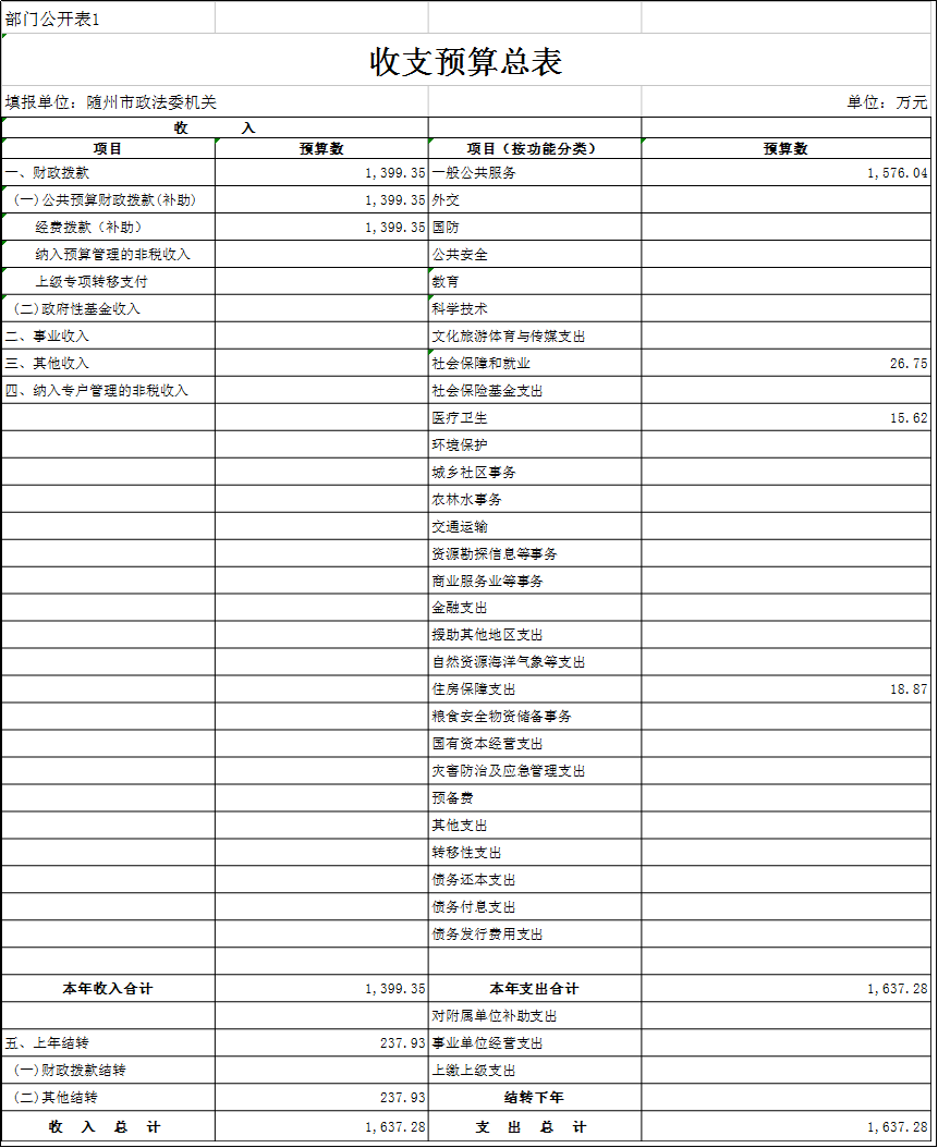 一、部門收支預(yù)算總表