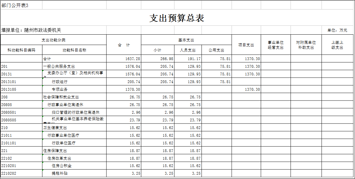 三、部門支出預(yù)算總表