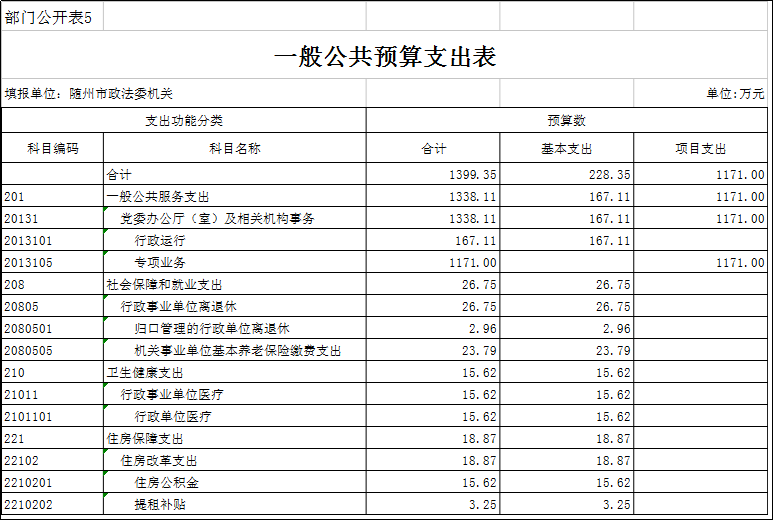 五、一般公共預(yù)算支出表