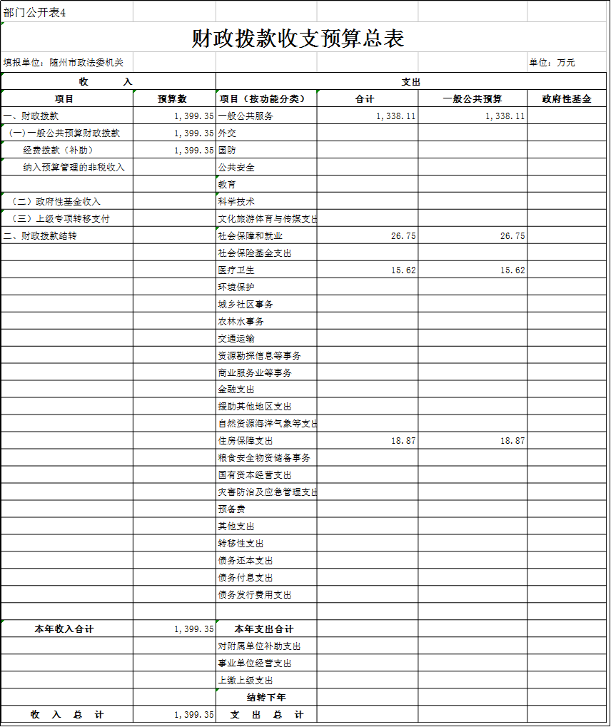 四、財政撥款收支預(yù)算總表