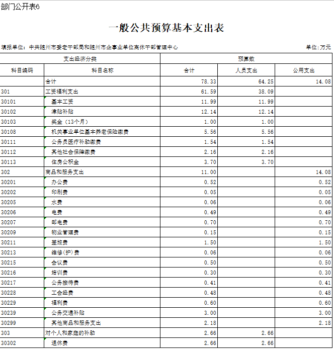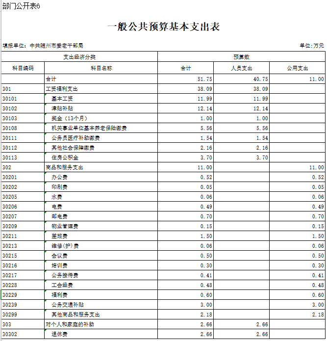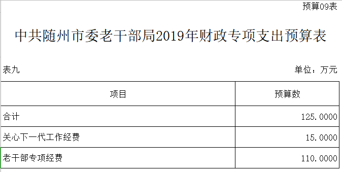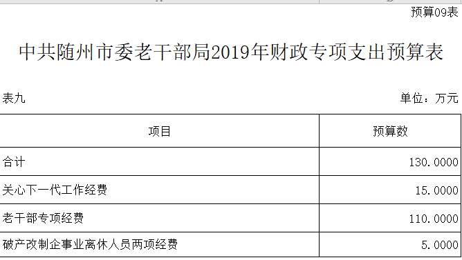 第三部分 中共隨州市委老干部局2019年部門預算表