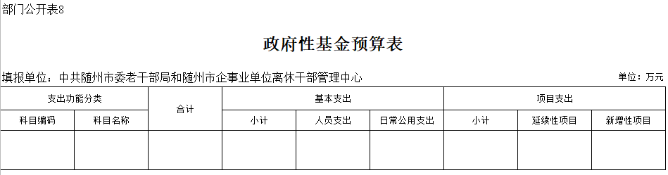 1、隨州市委老干部局(含隨州市企事業單位離休干部管理服務中心)2019年沒有使用政府性基金預算撥款安排的支出。