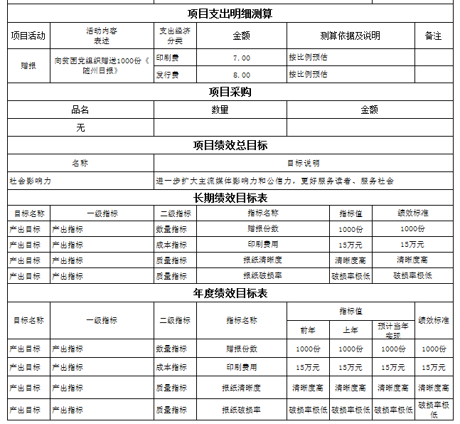 2019年隨州日報社公用經費支出年初預算總額為180萬元,比上年減少0.5萬元,增長0.3%,相對持平的主要原因為單位嚴控開支,因此較去年漲幅不大。其中:辦公費19.5萬元,印刷費0.5萬元,水費18.5萬元,電費31.5萬元,郵電費9.5萬元,物業管理費30.5萬元,差旅費7.5萬元,維修(護)費5.5萬元,會議費3.5萬元,培訓費1.5萬元,公務接待費3.5萬元,公務用車維護費5萬元,工會經費8萬元,其他商品與服務支出35.5萬元。