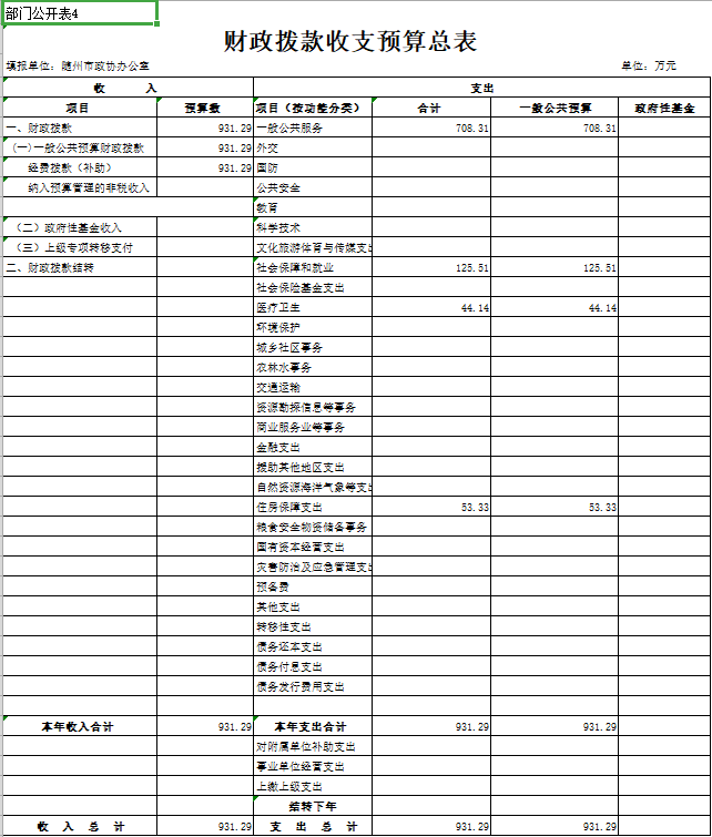 隨州市政協辦公室2019年財政撥款支出預算表中的項目科目名詞解釋。