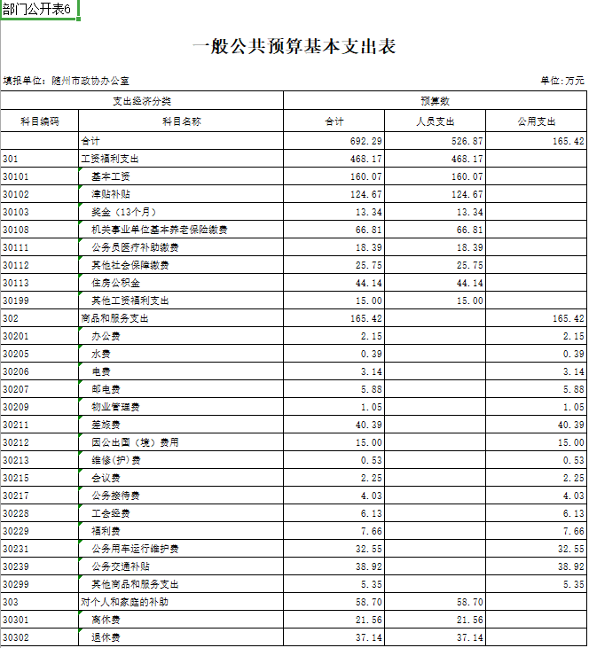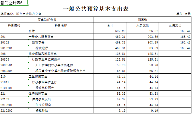 行政運行(2010201):反映市政協機關的基本支出(在職人員的工資、津補貼和日常公用經費)等費用。