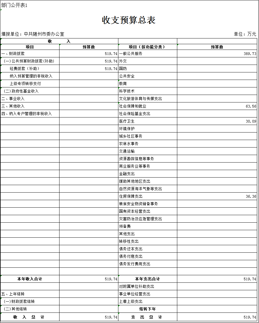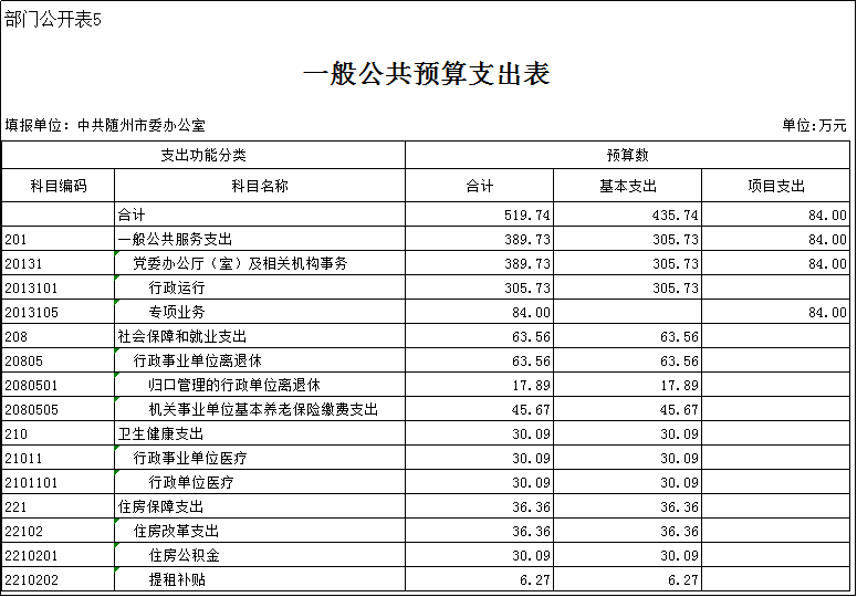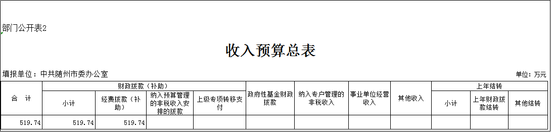 第三部分 ?中共隨州市委辦公室2019年部門預(yù)算表
