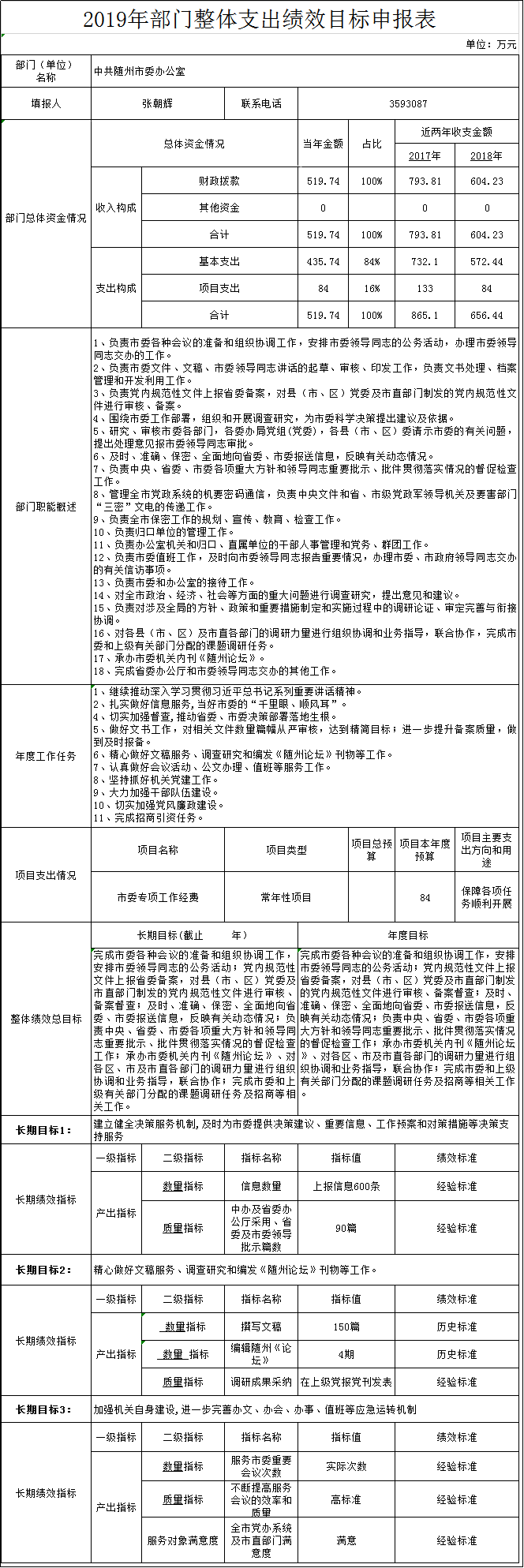第二部分?中共隨州市委辦公室2019年部門預(yù)算情況說明