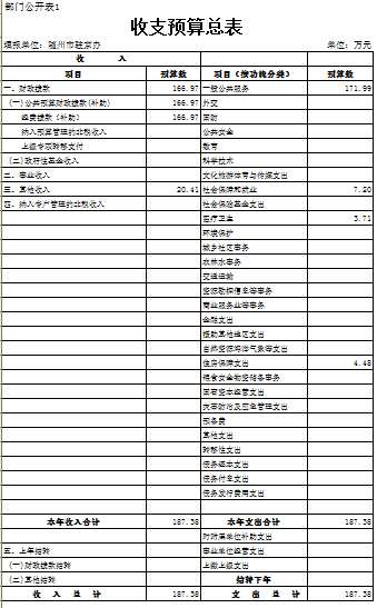 本年收入預(yù)算總額187.38萬(wàn)元,其中:財(cái)政撥款(補(bǔ)助)166.97萬(wàn)元、其他收入20.41萬(wàn)元。與上年持平。