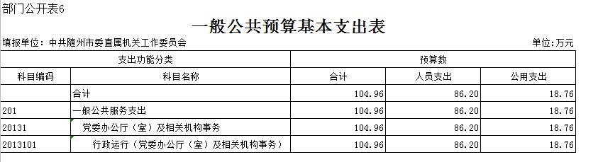 第三部分 中共隨州市委直屬機關工作委員會2020年部門預算表