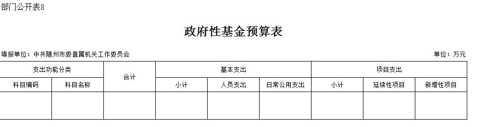 中共隨州市委直屬機關工作委員會2020年無政府性基金。