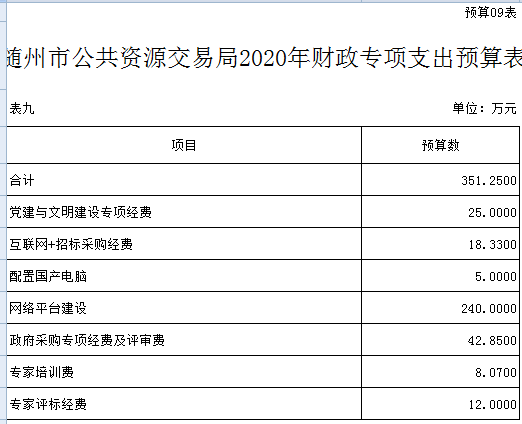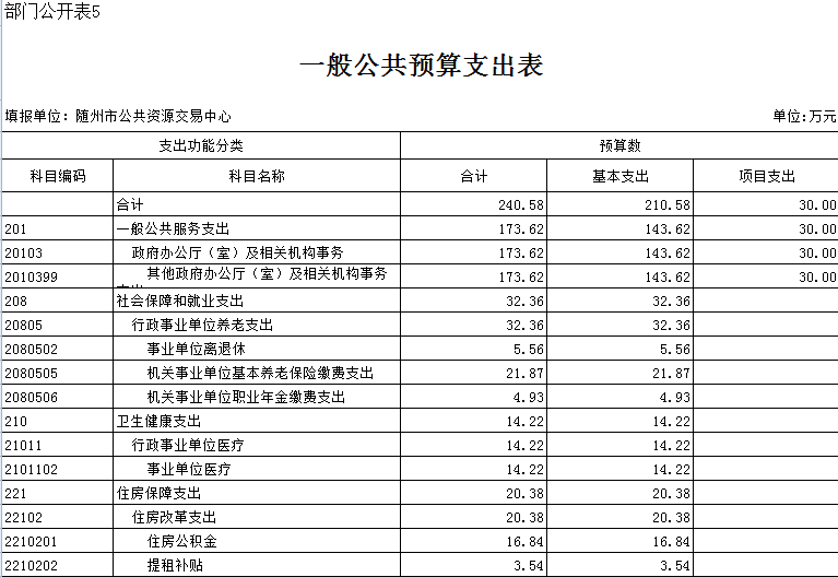 第三部分隨州市公共資源交易中心2020年部門預算表