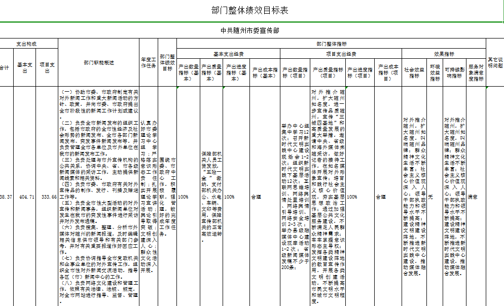 第四部分??隨州市委宣傳部2020年預算績效情況