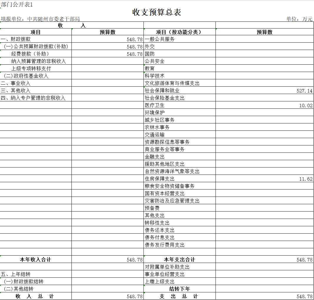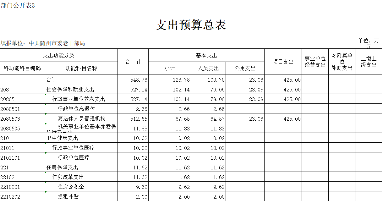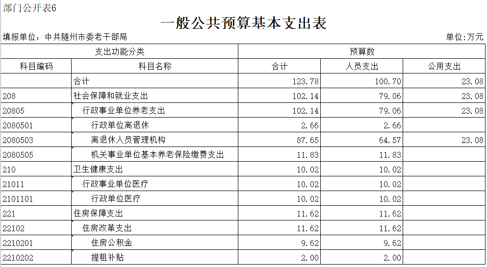 ??第三部分??中共隨州市委老干部局2020年部門預算表