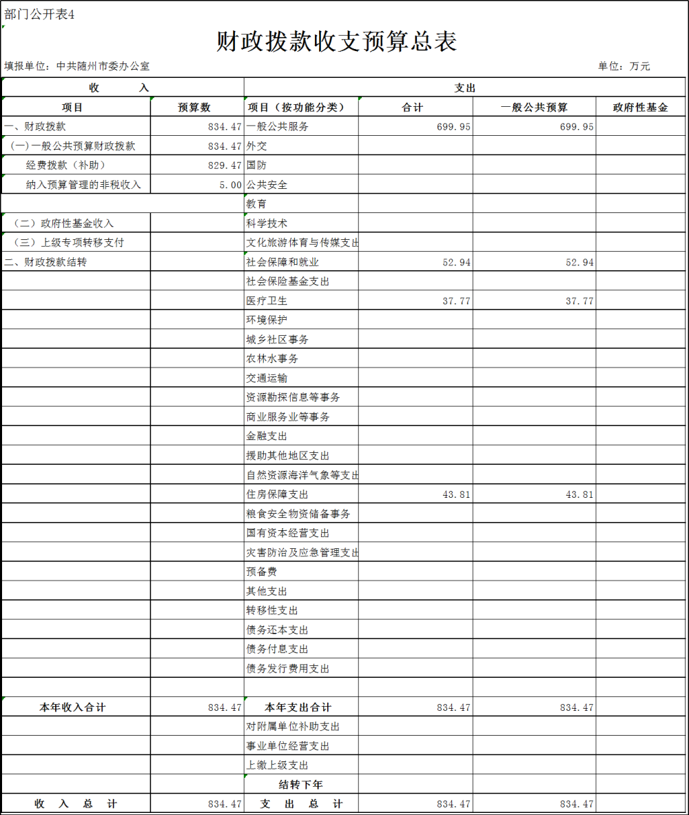 第三部分 中共隨州市委辦公室2020年部門預算表