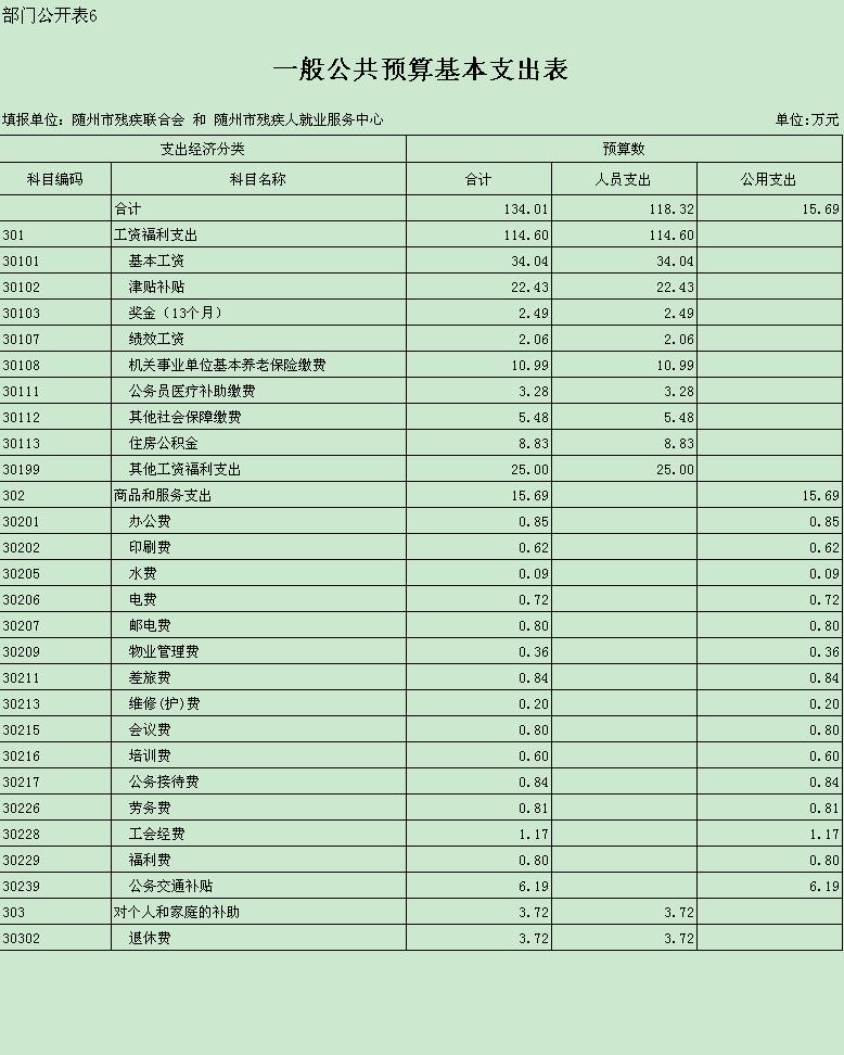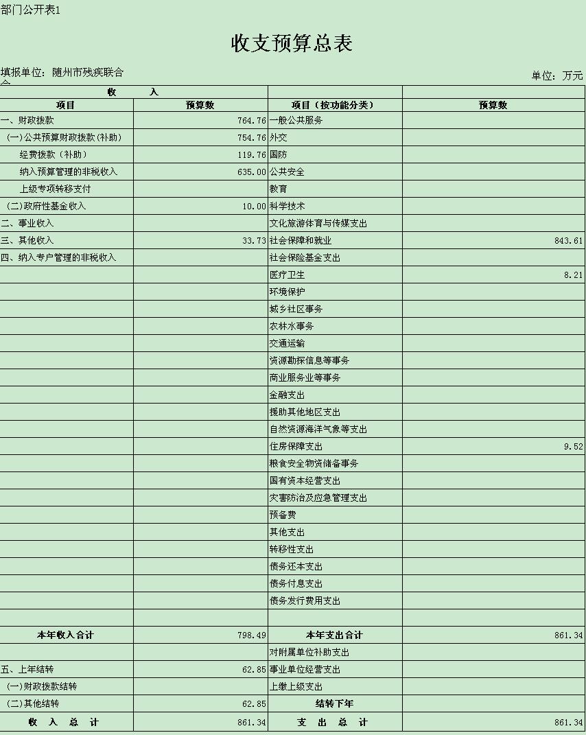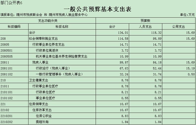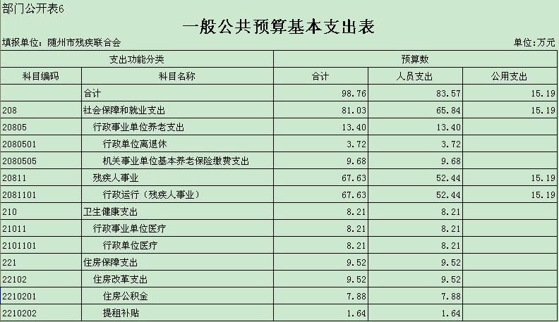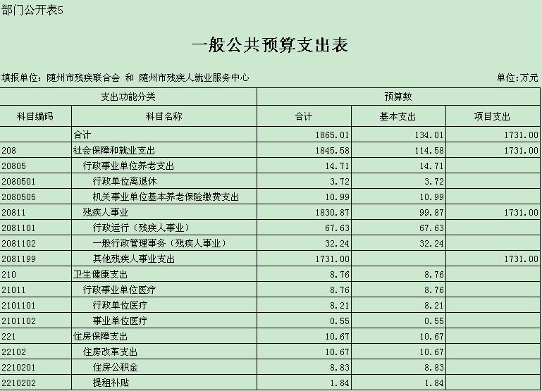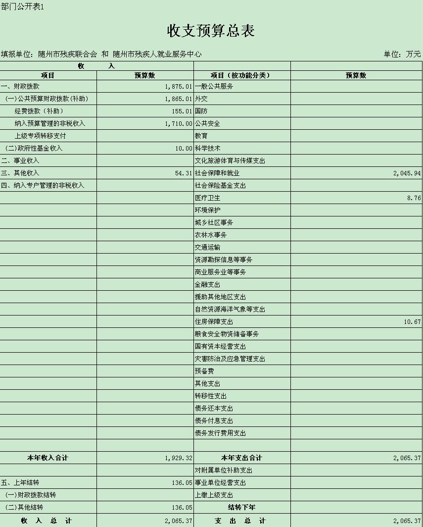 1、隨州市殘疾人聯(lián)合會機關(guān)預(yù)算公開表